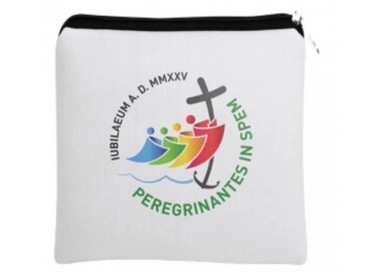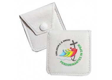 ASTUCCIO PORTAROSARIO GIUBILEO 2025 IN SIMILPELLE BIANCA CON CERNIERA